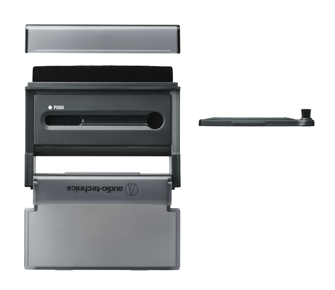 Esta herramienta 3 en 1 combina tres accesorios esenciales para el cuidado y disfrute del audio analógico: dos cepillos y un soporte para la portada del disco. El cepillo de terciopelo permite retirar suavemente el polvo de la superficie del vinilo, asegurando que esté libre de partículas antes de reproducirse.